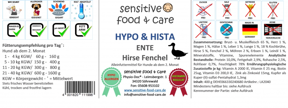 HYPO-HISTA ENTE Hirse Fenchel / (Inhalt:) 400 g