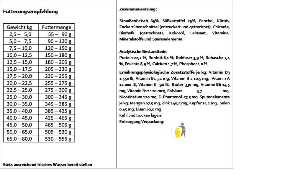 Hinweis: Bitte bestelle rechtzeitig, etwa 14 Tage bevor diese Packung zur Neige geht, oder bei Leerung des ½ Futtersacks, denn dieses Futter wird der Frische wegen, ganz konsequent, nur in kleinen Mengen produziert. Daher kann dies zu einer gewissen Wartezeit bis zur Auslieferung führen.